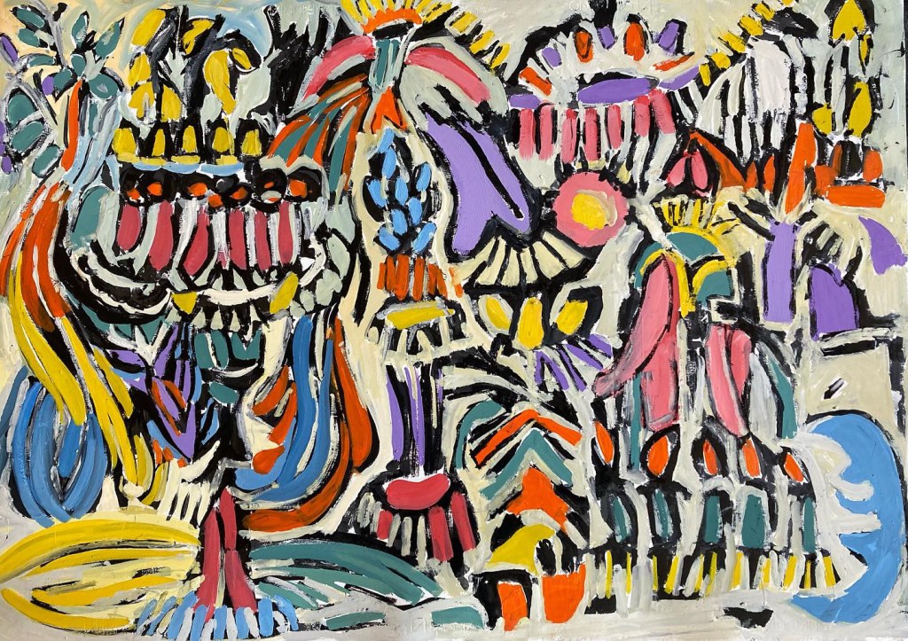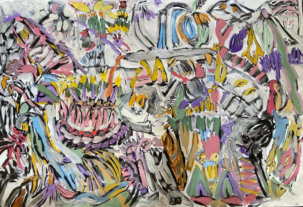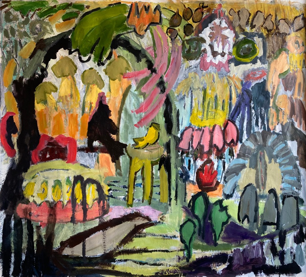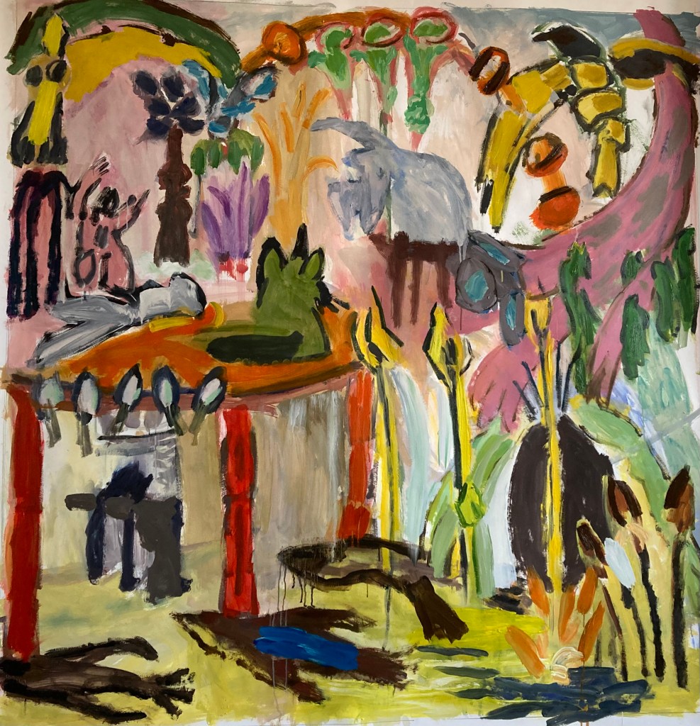 I am currently focused on painting. My paintings develop through doing more. The thinking is done primarily in front of the canvas and the actions are attempts to describe the thoughts. I approach the canvas with only a vague plan in mind, the plan shifts as the painting develops… reflection occurs somewhere between painting bouts. The tools are the same building blocks that formal painting has employed infinitum; the combinations of colour, line and shape are limitless. When I was at art school in the 80’s, painting was claimed by many, to be dead; everything had apparently been done. Perhaps it had… but certainly not by me. Consequently I continue to paint in order understand my relationship to myself, the world… and to the act of painting itself. I love the texture and innate expressive quality of oil colour and its respective mediums. The paintings are currently deconstructed narratives, reshaped to fit within a pictorial context… the paintings are as much about the nature and making of paintings as they are about personal narratives. This is important as it gives the viewer the ability to access the paintings with more freedom.