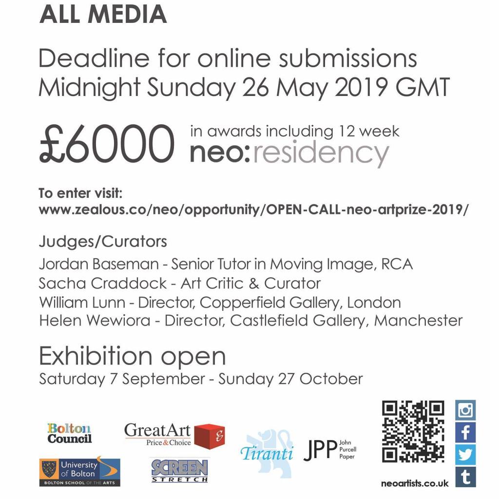 neo: residency Award- New Graduate 2018-20: 12 week residency and solo show, sponsored by neo: artists, the University of Bolton and GreatArt