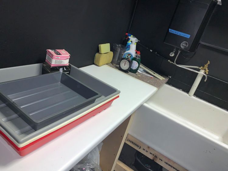 Black and white photographic darkroom: Our newly established black and white darkroom can accommodate 35mm and medium format film (up to 6×7), and print sizes up to 16in x 20in.