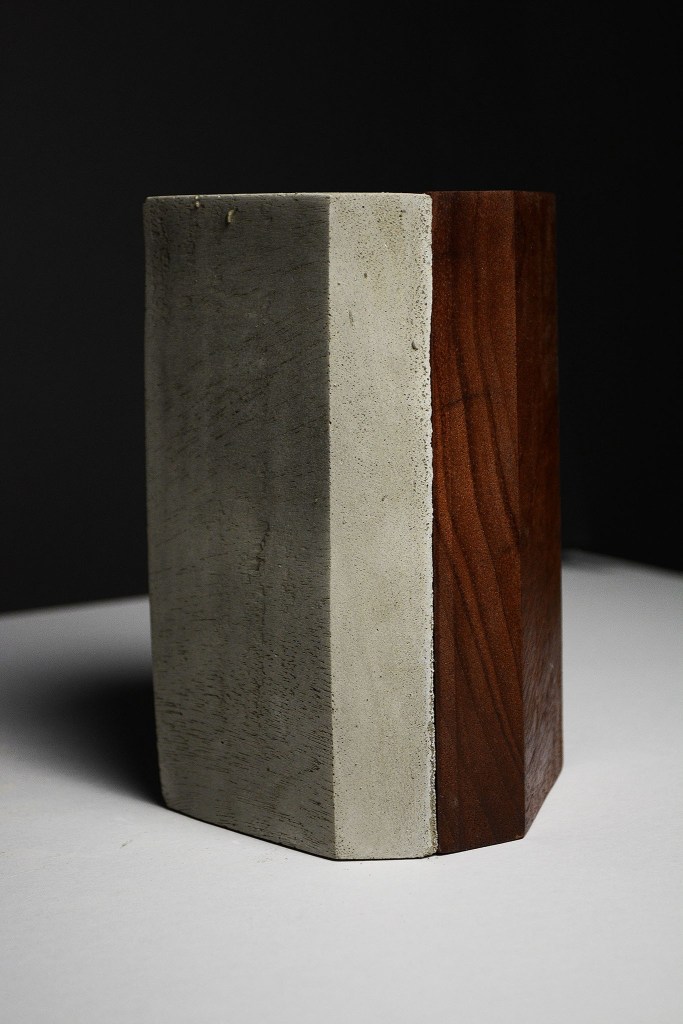 Fragments of wood, cast concrete and layered prints evoke traces of monuments, temples or relics from an imagined past. In the sculptural series Muses and Monoliths, reclaimed wood is reformed into geometric structures reminiscent of ancient artefacts, while concrete casts echo their presence with a sense of permanence and ritual weight.
